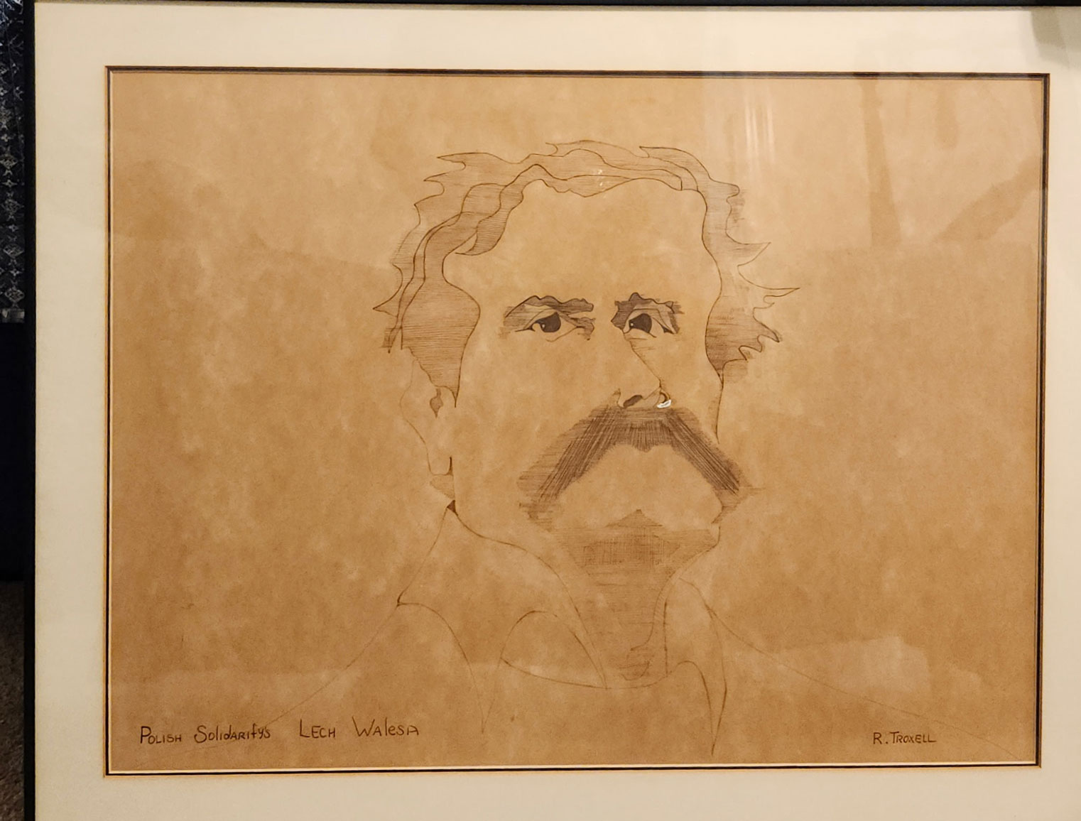 Second is a picture of a special illustration shown to Mr. Walesa. It is a pen and ink drawing that Richard Troxell created in 1984, honoring Mr. Walesa many years before when he was honored with the Nobel Peace Prize for fighting and defeating communism in Poland. The drawing, honoring Lech Walesa, also hung for 10 years in the hall of the Poor Richard’s Club in Philadelphia at a time when Troxell was a union organizer and self-made Mortgage Foreclosure Preventionist working for Legal Aid, saving homes of the poor from being foreclosed upon.